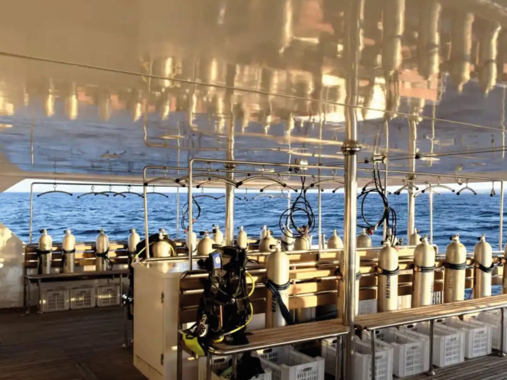 Le pont de plongée spacieux facilite la préparation et le rangement du matériel, avec deux zodiacs dédiés, des compresseurs air et Nitrox, ainsi qu’un service de location d’équipement. Tout au long de l’année, le Hammerhead II propose des itinéraires d’exception couvrant les plus beaux sites de la mer Rouge : Elphinstone, Daedalus, Brothers, St John’s, Rocky, Zabargad, ainsi que les épaves mythiques du nord, dont le Thistlegorm et le Dunraven. À bord du Hammerhead II, profitez d’un confort absolu, d’un service attentif et d’une aventure sous-marine au cœur des plus beaux paysages de la mer Rouge.