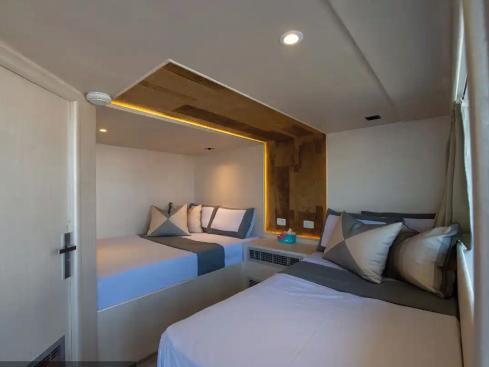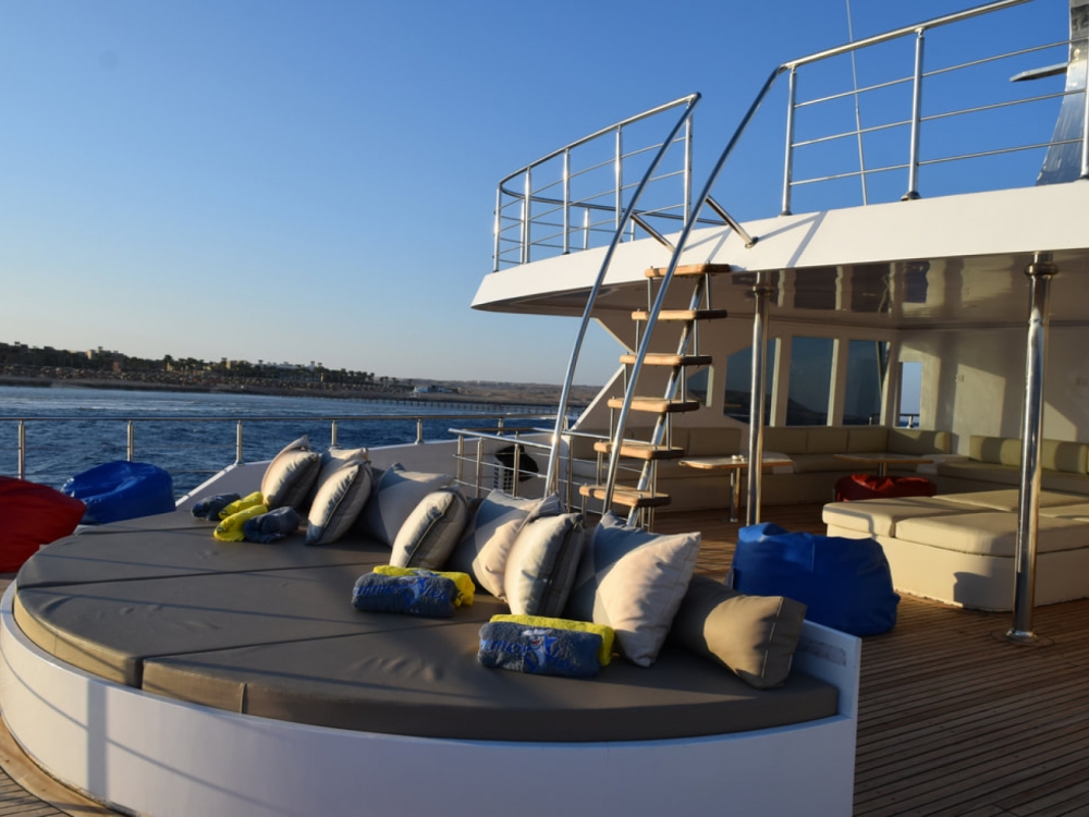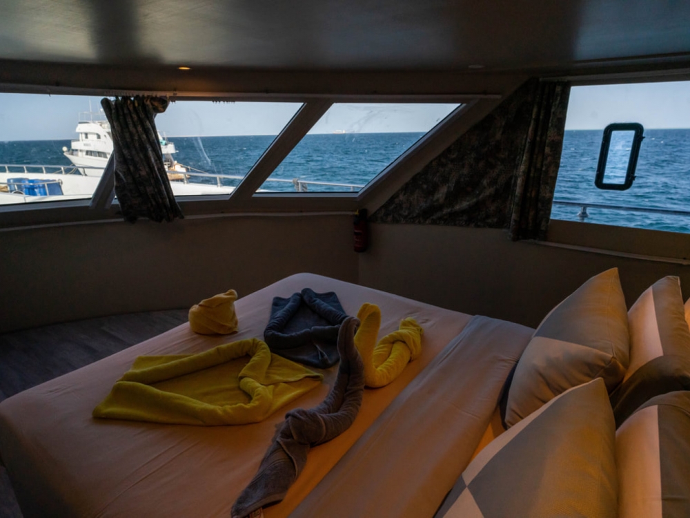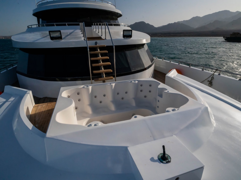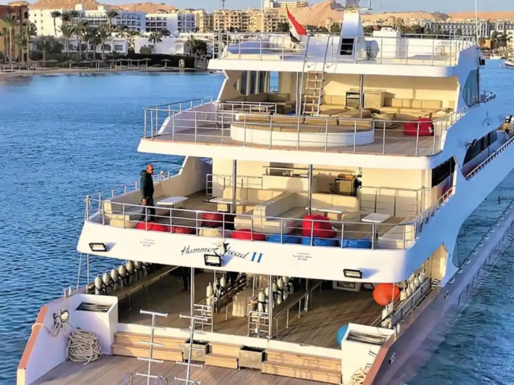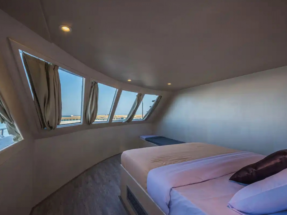 Le Hammerhead II est un superbe bateau de 43 mètres, alliant élégance moderne, confort et fonctionnalité pour offrir une expérience de croisière plongée inoubliable en mer Rouge. Il dispose de 16 cabines climatisées, certaines avec salle de bain privative, pouvant accueillir jusqu’à 32 passagers dans un cadre raffiné et convivial. Les espaces communs ont été pensés pour la détente : un salon-restaurant lumineux avec de larges fenêtres panoramiques permet de savourer les repas tout en admirant les paysages, tandis que les ponts supérieurs offrent de vastes espaces solarium, un jacuzzi et un mini-bar pour se relaxer après les plongées.