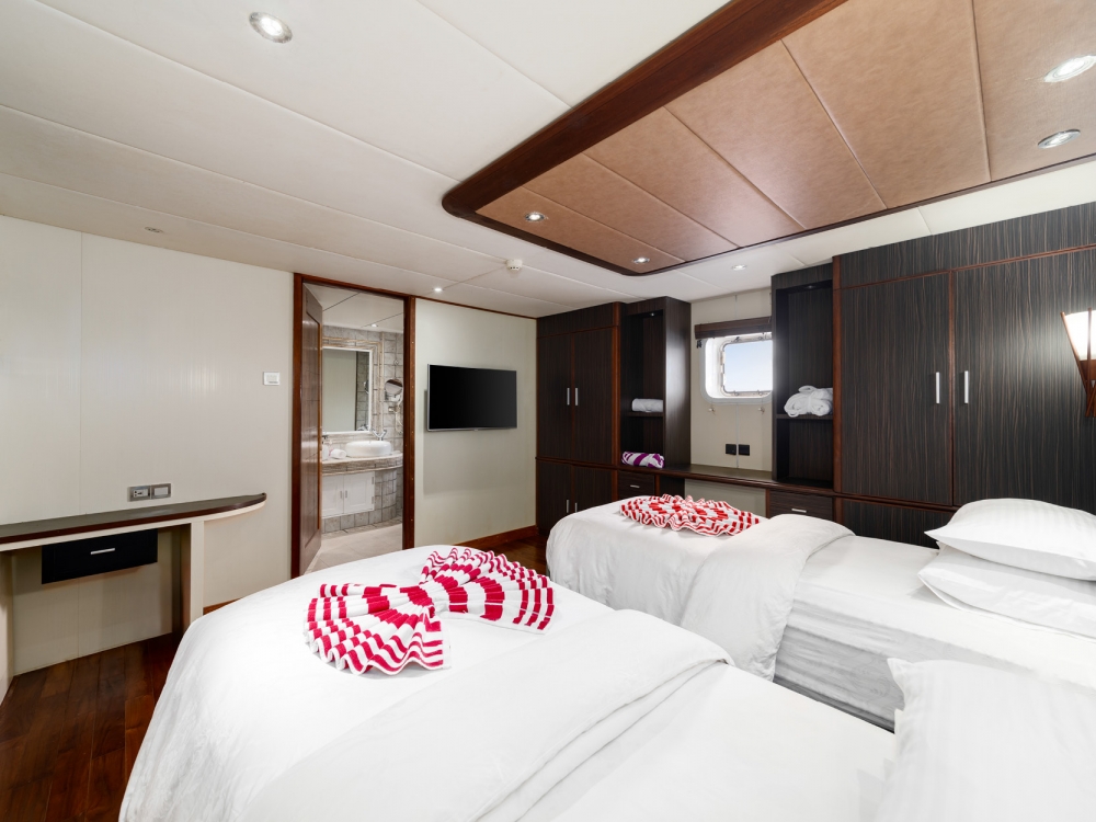 Entièrement rénové en 2020, le Seafari Exploree 2 propose 12 cabines avec salle de bain privative et climatisation individuelle, offrant un hébergement confortable et adapté à tous : cabines doubles, twin ou simples.